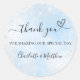 A light blue sky as background, decorated with faux silver glitter. With the text: Thank you for sharing our special day, with a small heart. Personalise and add your names.