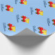 Baby blue wrapping paper with toy dump truck and personalised name of boy. Cute idea for original baby shower or 1st birthday presents. Sweet gift wrap design for new mum or mother to be. Adorable dumptruck illustration. Also nice for Birthday or Christmas Holidays.