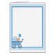 Polka dot border with baby boy in a carriage in one corner. Customise this product with a name or message to make it truly unique