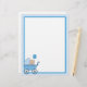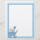 Polka dot border with baby boy in a carriage in one corner. Customise this product with a name or message to make it truly unique