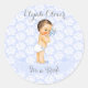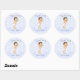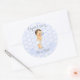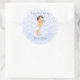 Blue, white and grey colour scheme with vintage baby holding a rattle. Thanks to easy customise it option you can easily turn this into a thank you sticker.