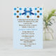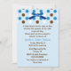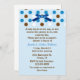 Pretty blue couple's baby boy shower invitation. Graphics of a pretty blue satin looking bow and blue, brown, and white polka dots decorate the top of the invitation. Custom text in blue and brown is ready to personalise for your special event. Adorable invitation the couple will cherish with all their new baby's memories.