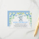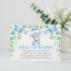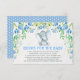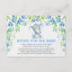 Gorgeous elephant theme baby shower book request card featuring elegant blue watercolor flowers and green leaves
