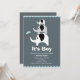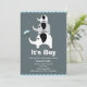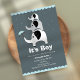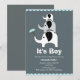 Welcome your baby boy with this adorable elephant-themed baby shower invitation, featuring a stack of three elephants and a playful rainy backdrop. With soft grey tones, teal highlights, and a sweet umbrella touch, it’s the perfect invite for a cosy and heartwarming celebration.