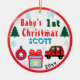 Baby Boy First Christmas Red Car NAME Ceramic Tree Decoration