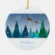 Celebrate your new baby boy with this custom Christmas ornament. The front features the name of your newborn and the text First Christmas, along with a snowy night, Christmas trees, and reindeer. The back features a photo of your new baby and the year. This ornament makes a great keepsake and will be treasured for many Christmases to come.