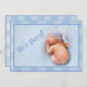 Sweet “He’s Here” baby birth announcement. Add your own photo to personalise.