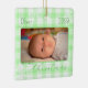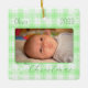 A square Christmas ornament decorated with a green plaid and snowflakes. Personalise it with a photo, the name and the year to make a perfect gift for new parents or a beautiful keepsake for any family.