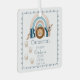 This custom keepsake baby Christmas ornament features a cute watercolor style bohemian illustration. The word Boy has a little lion head in the centre, with a boho rainbow in the background. Cute lion cub paw prints are printed along the side. A sample name is printed below the lion, followed by the newborn baby's birth details. The date, time and weight are listed. You can personalise the ornament to include your own custom name and other text.