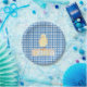 A baby chick with a blue gingham background boy's baby shower paper plates.