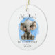 Personalise this adorable baby’s first Christmas elephant on a blue background with name and year..