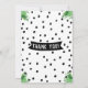 A cute watercolor animal baby birth announcement and thank you card. With a cute lion, elephant and giraffe with jungle leaves and black and white background patterned spots. With a reverse side design and Thank You! inside a ribbon. Add a large landscape oriented photo into this design to fit into the space provided. Designed by www.invitecentral.com
