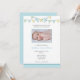 He's finally here and cute as can be, please join us for a sip and see! Cute sip and see invitations to welcome a baby boy, with blue, green and yellow baby blocks and bunting in a polka dot pattern. Add your baby's photo in the space provided.