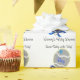 Lovely Personalised Baby Shower Wrapping Paper. Elegant silver baby rattle with blue star and look of beaded blue bow. With the wording, Sweet Baby on the Way. Boy is written in blue text inside baby rattle. Personalise with mum-to-be's Name Baby Shower. Original Artwork by TamiraZDesigns.