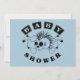 Cute blue skull and crossbones with Mohaw and BABY SHOWER text for baby boy.