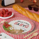 Red gingham with wood and red & white floral accent with baby BBQ chef.