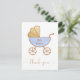 Thank your baby boy shower guests with this cute and minimal thank you postcard featuring a pastel blue and gold watercolor of a retro baby carriage and "thank you" written in a stylish script coordinating with the gold of the carriage. On the front you can custom the text on the carriage (baby's name, "Thank You," "It's a Boy!" or leave blank); on the back, you can easily personalise your return address, thank you message and signature.