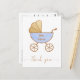 Baby Boy Shower Retro Carriage Blue Gold Thank You Postcard