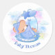 Custom baby name sticker featuring a cute teddy bear sleeping in a blue sling while floating in the sky with balloons; perfect for your baby shower celebration.