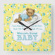 Baby Boy Teddy Bear Square Wall Clock