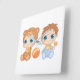 Baby Boy Twins Bear Jumpsuit Square Wall Clock