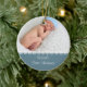 Personalise this sweet and simple holiday ornament to celebrate a new baby's first Christmas. A lovely keepsake for new parents, grandparents, close friends and relatives. The template is set up for you to add your favourite photo to the front, with plenty of room on the back for your birth stats or custom text. The design is on a contemporary blue background with neat white typography (but please feel free to hit 'customise' if you wish to change the colours). Please browse our store for matching and coordinating designs or alternative colours.