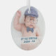 Celebrate your baby boy's first Christmas with this elegant customisable glass ornament. Easily personalizable with the photo of your newborn baby girl and your own caption in modern blue fonts.