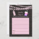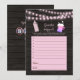 This is a Guess The Baby Food baby shower game. String lights with pink baby bottle and frothy beer mug on dark wood background. Bottlecap "Baby" typography on back, along with templates.