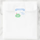 NewParkLane - Pesonalized (Baby) Boy's Birthday Celebration Sticker, with your name in a blue banner in fun script typography, and a cute green and pink baby bunny. All text templates are easy to adjust in Zazzle!