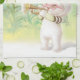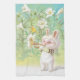 Baby Bunny Trumpet Player with Bird in Lily Garden Tea Towel