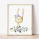 Baby Bunny, Woodland Animals, Boho, Purple Flowers Poster