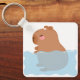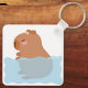 Keychain with a design of a cute baby capybara who explores the world and walks in water & learns swimming.