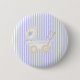 A blue and white striped background with a blue baby carriage on customisable baby buttons and magnets that are perfect for baby showers or to announce the arrival of the new baby boy!