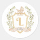 Baby Carriage Monogram L | Neutral Classic Round Sticker