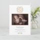 This sweet baby announcement features a monogram crest with a baby carriage in a neutral colour scheme. Introduce your baby to the world with a photo and all the details of your new baby's special day.