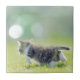 Baby cat running on grass field. tile