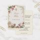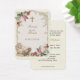 This card features a tender image of a baby in a cradle, adorned with a gold crucifix and surrounded by delicate red and pink roses. The design is elegantly framed with a vintage gold border, creating a heartfelt tribute that invites prayers and offers comfort during this difficult time.