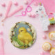 Paper Plates showing a baby chick surrounded by pussy-willows in springtime.