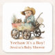 Yeehaw it's a Boy! Western themed baby shower paper coasters, with adorable graphics of a baby boy cowboy sitting in a wagon. Personalise the brown text to suit your event needs.