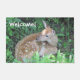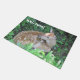 This welcome mat features a baby deer waiting for his mother in the woods of Connecticut.