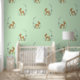 Baby Deer Fawn with foliage Design Wallpaper with customisable background colour.