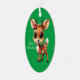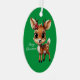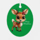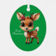 Celebrate the holiday season with this green festive oval metal ornament featuring an endearing woodland forest animal cartoon graphic of a cute baby deer with poinsettia flowers tucked in the fawn's ear, and Merry Christmas written in white. Perfect reindeer with antlers for decorating your tree or as a thoughtful gift, this whimsical floral doe decor makes a cherished keepsake for years to come. Customise by changing the text, the font, the font colour, or remove the text. You can even transfer this design onto other products. Enjoy this design your way! Check out ForestBabies Xmas Deer Collection for matching decorations. 🎄🦌