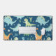 The charming design of a colourful baby dinosaur pattern set against a blue background