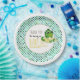 Cute baby Dinosaur hatching from an egg is the theme of this baby shower, new baby partyware item. Add names, date, event as desired to the template fields. Green and blue polkadots and modern trending typography complete this fun baby boy or girls shower look. For matching items view the attached collection of contact Designer LeahG.