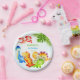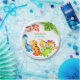 Baby dinosaurs toddler birthday party personalised plates. Blue and green colours.