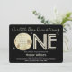 A disco themed our little disco queen is turning one first baby birthday invitation. This 1970s party theme invitation is black and yellow with the word "One" in large letters with a disco ball as the first letter of the word. Simply, customise this invitation, add it to your cart, and happy birthday to your wonderful baby!