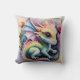 Throw pillow features a colourful baby dragon against a floral backdrop. An adorable fantasy animal artwork in pinks, greens, blues, purples, and yellow.