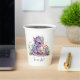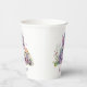 Fantasy lovers baby gender reveal paper cups, with sweet graphics of a colourful blue and pink baby dragon, with colourful wildflowers, against a white background. Personalise the custom text to suit your needs.