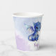 Fantasy lovers baby gender reveal paper cups, with sweet graphics of a blue baby dragon and a pink baby dragon, against a pink to blue gradient background. Personalise the custom text to suit your needs.