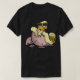 I give wanted to give this a 4 instead of a 5 because these Basic DARK T0shirts run unexpectedly SLIM or Narrow. Which is great if you do not have a potbelly, but I have a paunch. It isn't the shirt's fault that I've got a beer belly. The design and shirt itself is a quality cotton shirt. The color is more of a deep purple, but still a very pretty color. The Basic DARK T-shirts run a bit SLIMMER than the Basic Ts. The neck is a fraction narrower (or seems to be narrower) also. I'm a paunchy middle-aged woman and my neck is 12 inches (31cm) thick and the neckline fell about the same as in the photo of the man, and I had the desire to tug it a bit. So if you're a thick necked man or like loose shirts, be aware these are slimmer shirts. Once I get rid of my lockdown paunch it'll look great. The shirt washed well in cold water with no apparent bleeding. We don't have a dryer, so it hung dry. Did not shrink. Love the colors and the design. The design looks smaller on my shirt than it does on the model on-line. But still, it looks good on the shirt. The printing looks as it does on the model, just the size seems fractionally smaller. Washed garment in cold water, hung dry and design appeared unaffected.